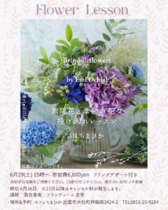 Workshop IN カフェ ちまひか 出雲 2024「紫陽花と季節の花々投げ入れレッスン」 毎月開催しておりますお花ワークショップ IN ちまひか 出雲のお知らせです。6月29日は紫陽花と季節の花々投げ入れレッスンで […]