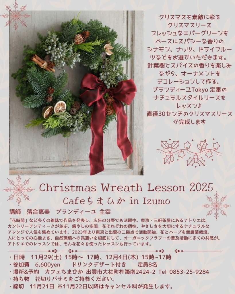 Workshop @ カフェ ちまひか 出雲 2025「世界でひとつだけのクリスマスリースレッスン」