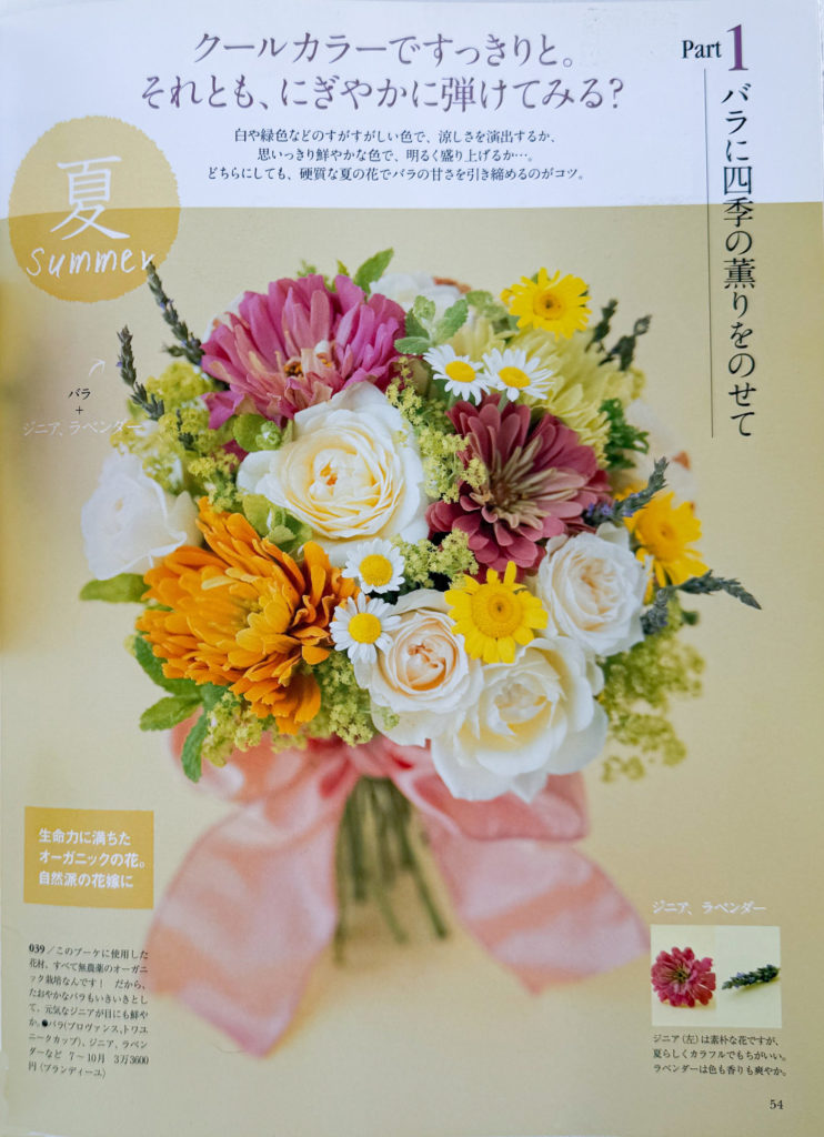 039バラとジニア、ラベンダー オーガニックフラワーのブーケ