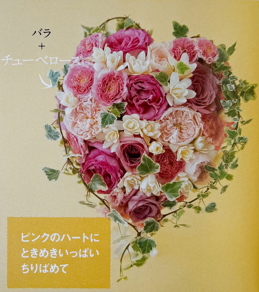 040バラとチューベローズ ハートのブーケ