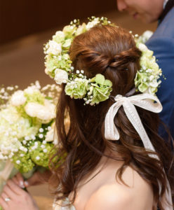 かすみ草とアジサイで仕上げた花かんむりとブーケ@ザ ランドマークスクエア トーキョー様【香澄さん】2019/1